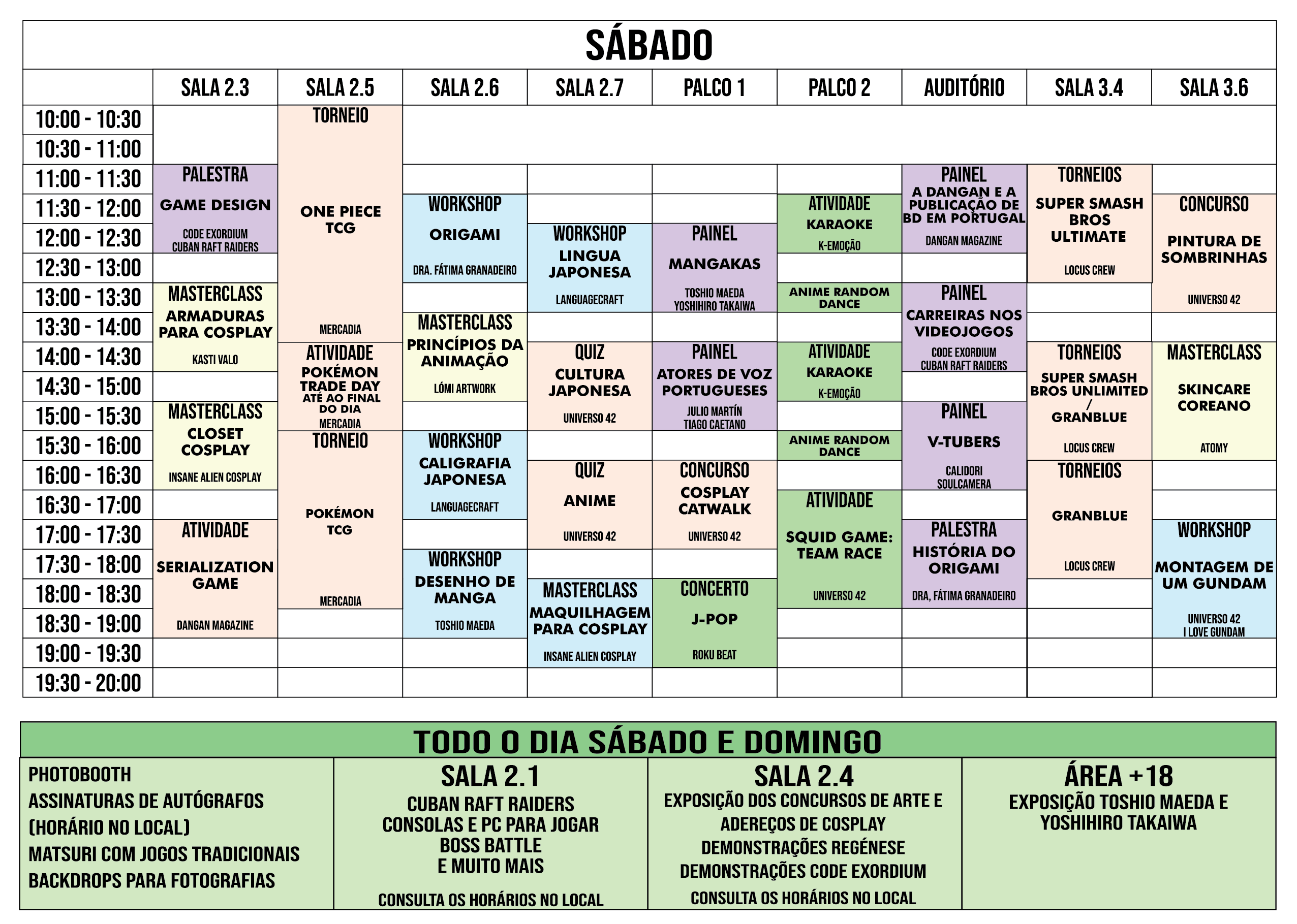 Em 2025 os visitantes tiveram a oportunidade de participar em varias actividades como Cosplay, Workshop, Competições de TCG, Jogos de Tabuleiro, Jogos Tradicionais Japoneses, Quizes, Musica ao Vivo, Palestras de Resinas, Gunpla e Desenho. Além de um mercado temático com artesanato, merchandising de anime, manga e cultura pop.